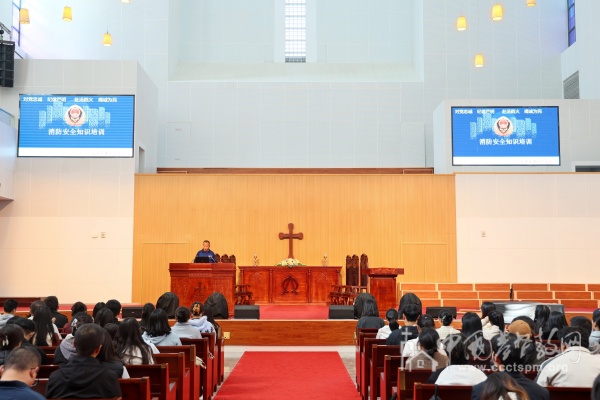 在第34个全国消防日来临之际,金陵协和神学院于2025年11月5日开展消防安全宣传教育活动。本次活动邀请江宁消防救援大队高新区中队一行3人来学院,进行消防知识讲座并组织灭火演练。