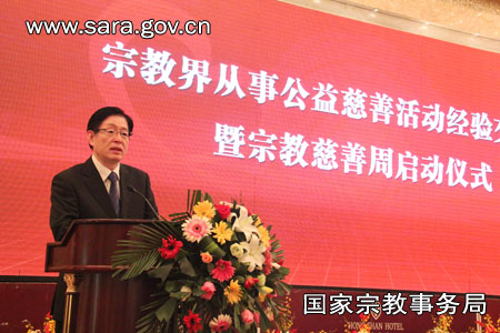 “哀鳏寡,恤孤独,振困穷,补不足”是中华民族的传统美德。宗教界从事公益慈善活动内有信仰支撑,外有社会认可,上有政策支持,下有信众基础,过去有着优良传统,未来更有光明前景。我们即将迎来党的十八大的胜利召开,让我们在以胡锦涛同志为总书记的党中央坚强领导下,以此次会议为契机,携手并进,开拓创新,奋发有为,共同推动宗教公益慈善事业又好又快发展,开创各宗教团体协同自律、宗教活动场所主动担当、信教群众积极参与的良好局面,为促进经济发展、文化繁荣和社会和谐做出新的更大贡献!