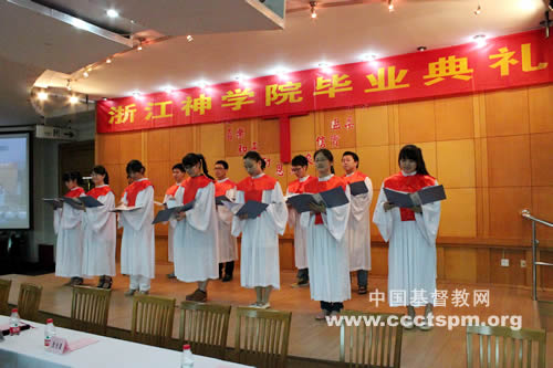 2013年6月24日,浙江神学院迎来了一年一度的毕业典礼,惯例之中却又有例外之处,因为今年也是神学院自专升本以来迎来了首届本科毕业生。这次共有四十六位毕业生即将踏上侍奉岗位。省基督教两会名誉主席、会长邓福村牧师和省基督教两会咨询委员会主任倪光道牧师应邀参加了此次毕业典礼。