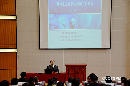 中国宗教学会会长、中国社会科学院世界宗教研究所卓新平所长以《世界宗教现状与中国宗教理解》为题,从“世界宗教现状与发展趋势、全球范围的宗教及对中国的影响、关于如何理解中国宗教的思考”三个方面进行讲座,他还引用习总书记的话“人民有信仰,民族有希望,国家有力量”,强调宗教务必与社会主义社会相适应,以及在构建和谐社会、实现“中国梦”国家大计层面作出贡献。