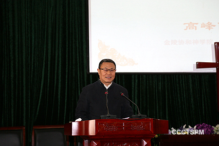 2016年3月23日下午,全国政协常委、中国基督教协会会长、金陵协和神学院院长高峰牧师,在金陵协和神学院报告厅,向全院师生员工传达了2016年全国人大与政协会议精神。