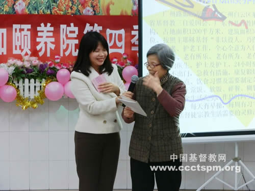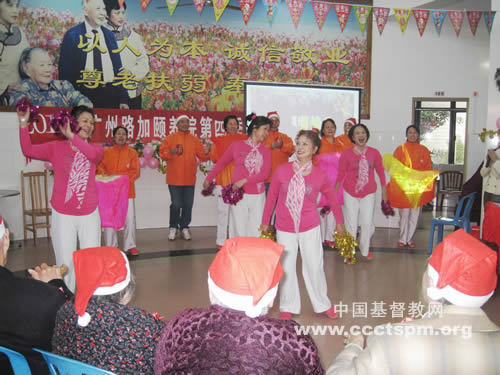 2012年12月20日下午,广东省基督教两会广州路加颐养院大厅里一派节日景象,圣诞老人、圣诞树、圣诞卡,让所有人都感受到圣诞的热烈气氛,这里正在举行“2012年第四季度院友生日会暨圣诞嘉年华联欢会”。广东省基督教两会的负责同工莅会向每位“路加人”献上节日的问候与礼物。100多位“路加人”及前来慰问长者的30多位义工朋友们欢聚一堂,2012年院庆十载被评选为院“杰出义工”之一的王宝铮院友(传道人),她代表院友表达了对颐养院这个大家庭的祝福与心声:“我们长者在路加生活得很快乐、很充实、很幸福,老有所为、老有所学,享受路加的情谊,更加感恩,愿路加这个大家庭越办越好,祝各位身体健康!”长者们兴高采烈的观看着载歌载舞的节目表演,在充满欢声笑语中度过这美好时光,享受着基督大家庭的温暖。