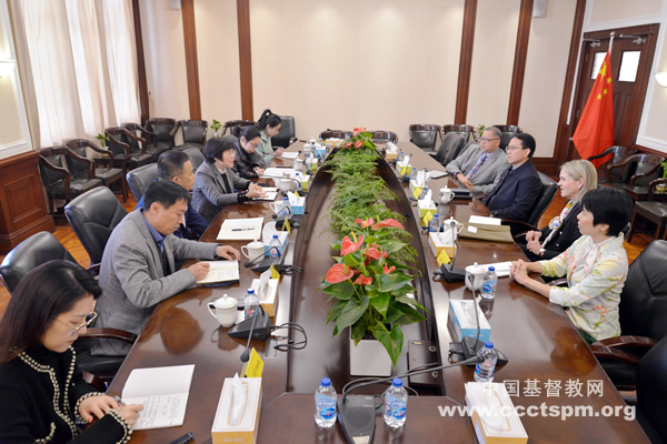 联合圣经公会全球慈善事工主任简·耶尔格豪斯(Jane Jelgerhuis)表达了自己第一次到访中国的感受,并就当下较为关心的事工进行了交流。刘文良博士在回应中代表联合圣经公会对中国基督教两会的热情接待表示感谢,感恩上帝带领越来越多的同工来中国交流,看到中国教会的好见证。他重申了联合圣经公会对于中国教会三自原则的尊重、对基督教中国化事工的支持,期待今后与中国教会有更深入、更全面的合作。