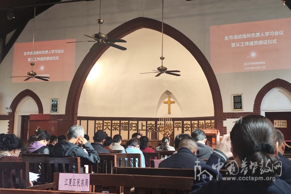 2025年10月23日上午,湖北省武汉市基督教两会在荣光堂举行全市活动场所负责人学习会议暨义工传道员颁证仪式。市基督教两会班子成员、教牧人员、场所负责人、义工传道员和团体工作人员等230余人参加会议。市民宗委宗教二处、相关区民宗局负责同志受邀出席会议。