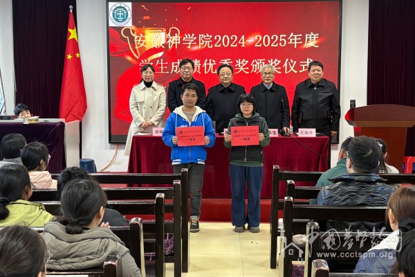 2025年12月3日下午,安徽神学院在学院小礼堂举行2024-2025学年学生成绩优秀奖颁奖仪式,院务委员会成员、任课教师及全体在校学生参加。