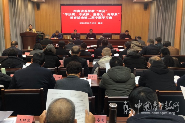 2025年12月18日,河南省基督教两会开展“学法规、守戒律、重修为、树形象”教育活动第二次学习研讨,省基督教两会班子成员、本届全体常委、市级基督教两会负责人及省重点教堂负责人参加,省基督教三自爱国运动委员会主席唐卫民牧师主持。