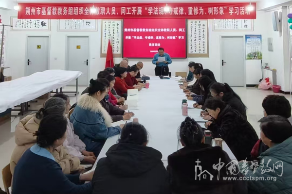 为持续深化全面从严治教,切实推进宗教团体管理水平和教风建设,2026年2月7日,山西省朔州市基督教教务组开展“学法规、守戒律、重修为、树形象”教育活动第四次集体学习,全体教牧人员和各堂点负责人参加学习。