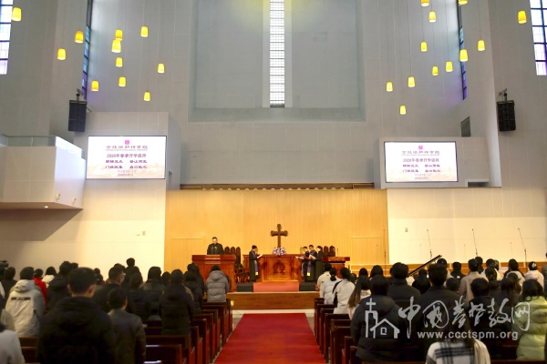 2025—2026学年春季学期开学礼拜在礼堂举行,金陵协和神学院副院长李江越主礼。他为世界和平、祖国繁荣昌盛、中国基督教健康传承,以及新学期学院的各项事工与全体师生的工作、学习、生活献上祷告。学院圣诗班献唱《唯一最爱是你》《奇妙的救主》,歌声庄重悠扬,寄托了对新学期的美好盼望。赵静文老师、苏喜乐牧师和唐勇权牧师依次宣读经训。