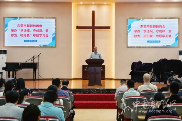 2026年3月26日上午,广东省东莞市基督教两会在东莞市基督教石龙福音堂举行“学法规、守戒律、重修为、树形象”教育活动专题学习会。全市基督教教牧人员40余人参加会议。