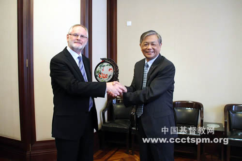 中国基督教三自爱国运动委员会主席傅先伟长老,副主席、秘书长(代)徐晓鸿牧师,中国基督教协会副会长单渭祥牧师等同工接待了客人一行。宾主双方进行了座谈。
