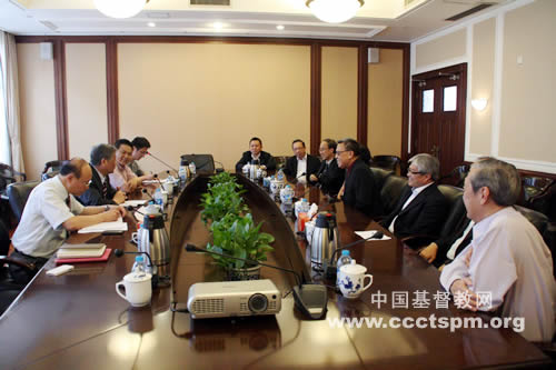 座谈会上,傅长老认为客人一行到访我会使彼此有了很好的沟通和交流的机会。傅长老向客人一行介绍了中国基督教两会出版和社会服务等事工。在介绍中国基督教会基本情况时,傅长老强调中国教会坚持独立自主自办教会的原则,同时也与普世教会有很好的联系与合作!傅长老希望双方能在彼此尊重、互相了解的基础上加强合作、常来常往,彼此分享经验,把各自教会办得更好。