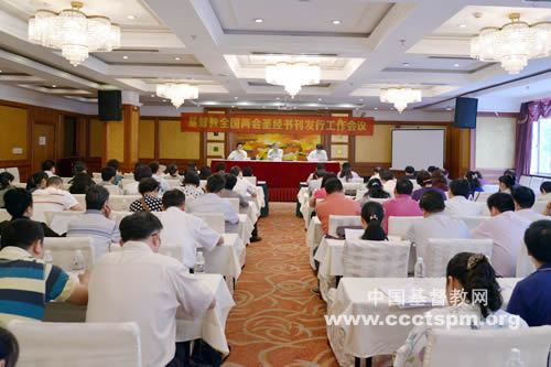 基督教全国两会圣经书刊发行工作会议于2014年6月10日在上海召开,来自全国各地教会77个圣经书刊发行点的一百余位负责同工出席了会议。会议由中国基督教协会驻会副会长单渭祥牧师主持,中国基督教三自爱国运动委员会主席傅先伟长老和国家宗教事务局二司裴红卫处长就如何在新形势下做好基督教内部书刊发行工作先后做了重要讲话。