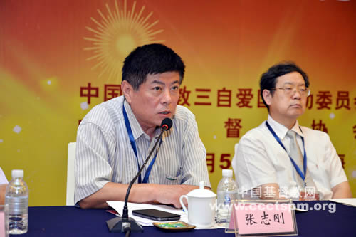 中国社会科学院世界宗教研究所所长、中国宗教学会会长卓新平教授以“‘中国化’:基督教在华更新与复兴的必由之路——纪念中国基督教三自爱国运动”为题发言。他认为:“中国化”具有双向互动的积极意义,在使基督教会真正“化”入中华的同时,基督教本身也会给中国文化增加许多积极的、开放的、向上的新元素、新动力。这种“中国化”需要基督教与中国社会文化及其宗教传统的建设性对话、沟通和交流,需要积极体认和领悟中国的文化道统、民族精神及其个人气质,需要融入中国社会文化氛围和中国民族的精神气场,尤其是需要了解中国知识分子等社会精英的处境与心境,使中国的“士”文化传统能与基督教的“先知”及“仆人”精神能够得到有机结合、融洽共处。